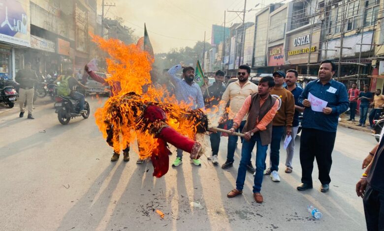 प्रदेश सह कोषाध्यक्ष नितेश साहू के नेतृत्व में भाजयुमो ने दुर्ग के इंदिरा मार्केट चौक पर कांग्रेस नेता राहुल गांधी का पुतला दहन कर रोष जताया.