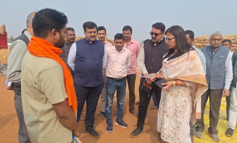 धान उपार्जन और संग्रहण व्यवस्था का निरीक्षण करने धमधा विकासखण्ड पहुंची कलेक्टर