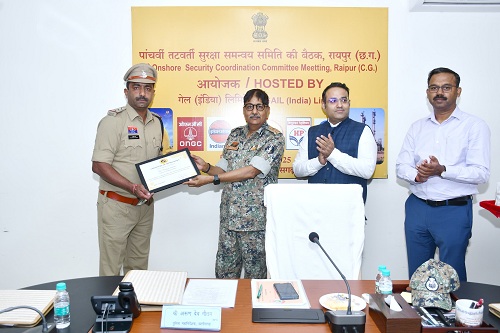 दुर्ग | थाना नंदिनी, जिला दुर्ग के थाना प्रभारी निरीक्षक मनीष शर्मा को उत्कृष्ट कार्य के लिए सम्मानित किया गया है। यह सम्मान 23 मई 2025 को नवा रायपुर स्थित पुलिस मुख्यालय में आयोजित Onshore Security Coordination Committee की मीटिंग के दौरान प्रदान किया गया।
