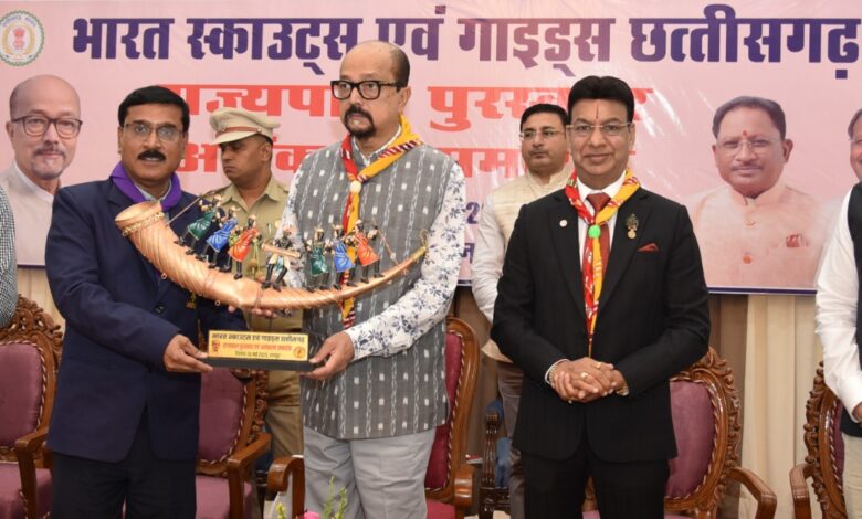 दुर्ग | राज्यपाल रमेन डेका के मुख्य आतिथ्य में आज राजभवन में स्काउट्स और गाइड्स छत्तीसगढ़ राज्यस्तरीय अलंकरण समारोह आयोजित किया गया। समारोह में राज्यपाल डेका ने राज्य के सर्वश्रेष्ठ स्काउटर, गाइडर, रोवर, रेंजर, एवं स्काउट-गाइड को राज्यपाल पुरस्कार से सम्मानित किया।