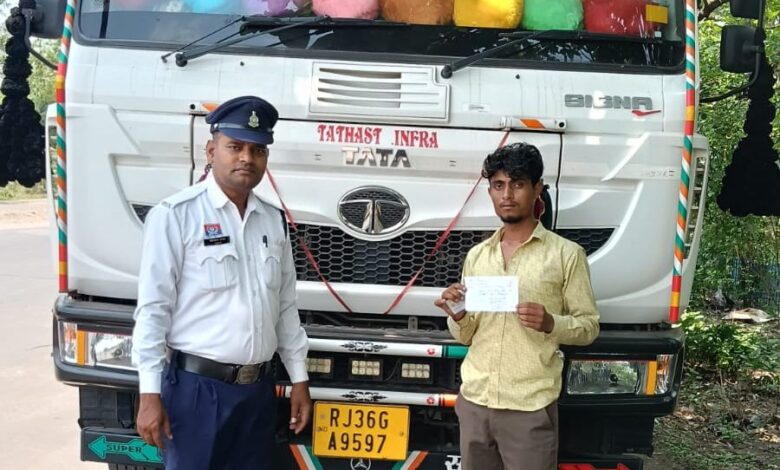 बोरिया गेट मार्ग में खड़े भारी वाहनों पर कार्रवाई, 10 चालकों पर चालानी कार्रवाई