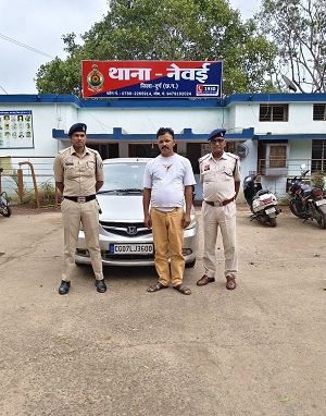 भिलाई/नेवई। थाना नेवई पुलिस ने अवैध मादक पदार्थ गांजा तस्करी मामले में लंबे समय से फरार चल रहे एक आरोपी प्रभुनाथ सिंह (उम्र 45 वर्ष) को गिरफ्तार कर लिया है। आरोपी को घटना में प्रयुक्त कार समेत पकड़ा गया है। पुलिस ने उसे न्यायिक रिमांड पर जेल भेज दिया है।