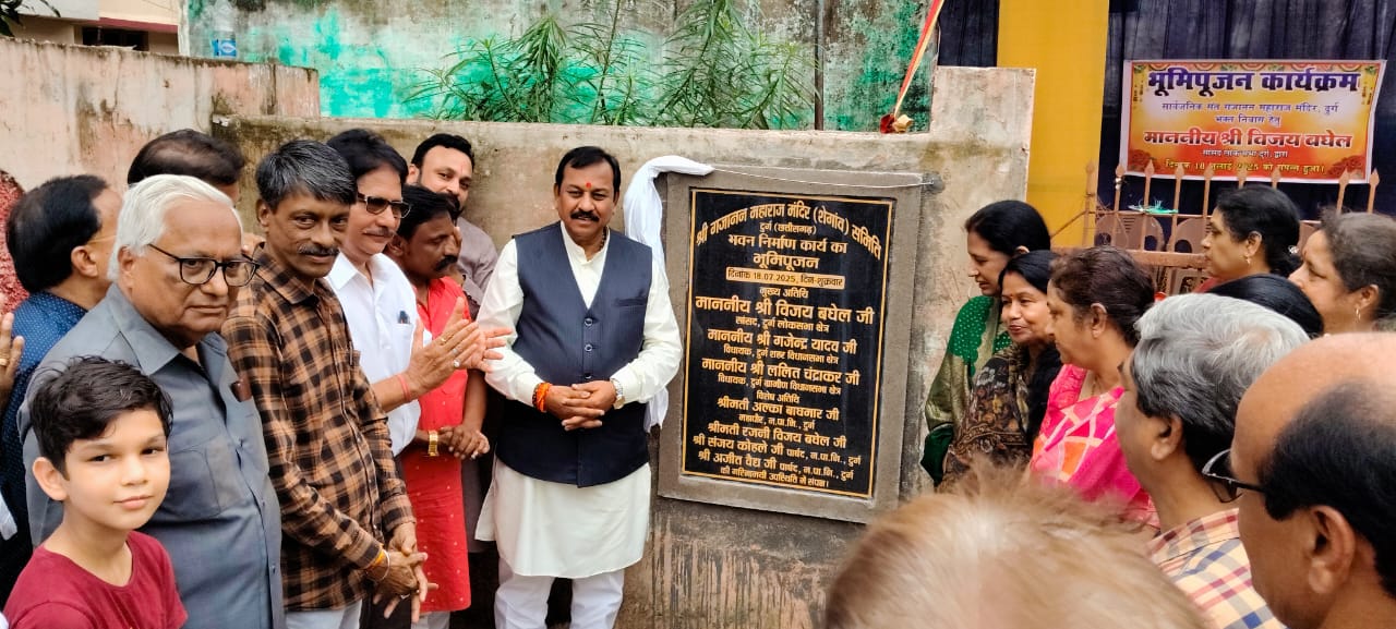 दुर्ग,| संत गजानन महाराज श्री राम मंदिर, शंकर नगर दुर्ग में भक्त निवास भवन निर्माण के लिए भूमि पूजन कार्यक्रम का आयोजन अत्यंत श्रद्धा और भक्ति भाव से सम्पन्न हुआ। इस शुभ अवसर पर मुख्य अतिथि के रूप में दुर्ग लोकसभा सांसद माननीय विजय बघेल जी एवं उनकी धर्मपत्नी रजनी बघेल जी उपस्थित रहे।