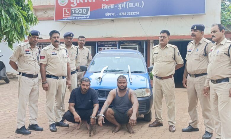 भिलाई। सेक्टर-5 मार्केट में शुक्रवार देर रात एक युवक पर तलवार से जानलेवा हमला करने वाले दोनों आरोपियों को भिलाई नगर पुलिस ने त्वरित कार्रवाई करते हुए कुछ ही घंटों में गिरफ्तार कर लिया। पुलिस ने आरोपियों के कब्जे से दो धारदार तलवारें और एक मारुति ऑल्टो कार भी ज़ब्त की है।