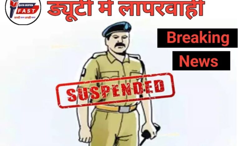उक्त लापरवाही को गंभीरता से लेते हुए वरिष्ठ पुलिस अधीक्षक ने निरीक्षक शिवप्रसाद चंद्रा को तत्काल प्रभाव से निलंबित कर रक्षित केंद्र दुर्ग में संबद्ध कर दिया है। निलंबन अवधि में उन्हें नियमानुसार जीवन निर्वाह भत्ता दिया जाएगा।