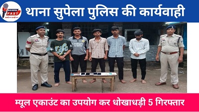 भिलाई। सुपेला थाना पुलिस ने एक बड़ी कार्रवाई करते हुए म्यूल अकाउंट का उपयोग कर ऑनलाइन धोखाधड़ी करने वाले 5 आरोपियों को गिरफ्तार किया है। पकड़े गए आरोपियों में तीन युवक और दो विधि से संघर्षरत बालक शामिल हैं। सभी को न्यायिक रिमांड पर जेल भेज दिया गया है।