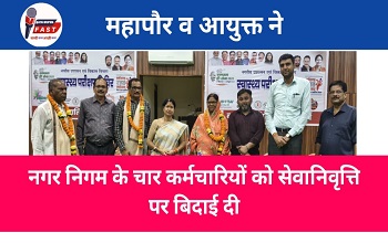 महापौर एवं आयुक्त ने कहा सेवानिवृत्त कर्मचारी आप अपना शेष सुखमय जीवन पारिवार के साथ व्यतीत करे और अपने पारिवारिक दायित्वों का निर्वाहन करे, इसके लिए मैं आप लोगो को शुभकामनाए देता हूॅ।