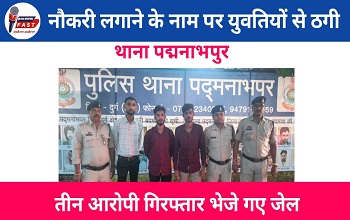 दुर्ग। थाना पद्मनाभपुर पुलिस ने नौकरी लगाने का झांसा देकर युवतियों से लाखों रुपये ठगने वाले तीन आरोपियों को गिरफ्तार कर जेल भेज दिया है।