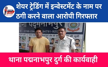 शेयर ट्रेडिंग में इन्वेस्टमेंट के नाम पर ठगी करने वाला आरोपी गिरफ्तार