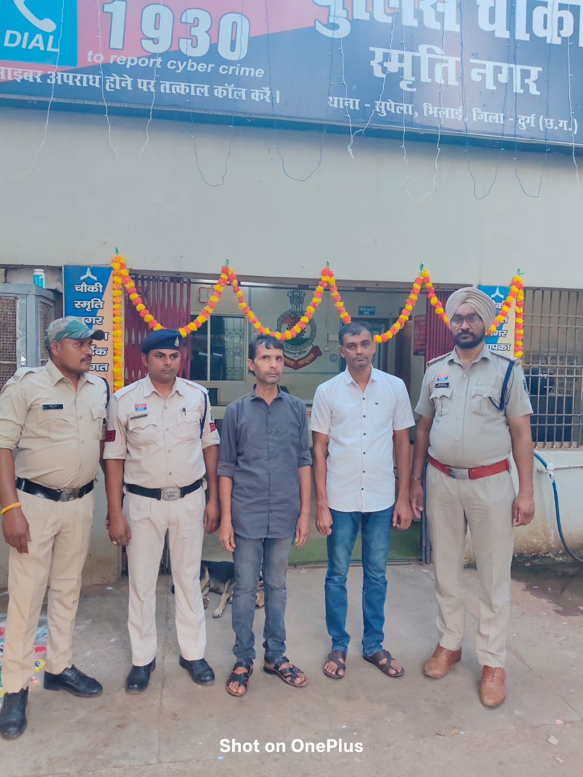 दुर्ग। थाना सुपेला (चौकी स्मृति नगर) पुलिस ने बड़ी सफलता हासिल करते हुए अपने ही भाई की ज्वेलरी दुकान में चोरी करने वाले आरोपी राजकुमार सोनी और उसके फुफेरे भाई सुरेंद्र सोनी को गिरफ्तार किया है। पुलिस ने आरोपियों के कब्जे से 29 नग सोने के मंगलसूत्र, 02 सोने के बिस्किट और ₹2,00,000 नकद सहित कुल ₹35 लाख का माल बरामद किया है। इस कार्रवाई में त्रिनयन ऐप ने महत्वपूर्ण भूमिका निभाई।