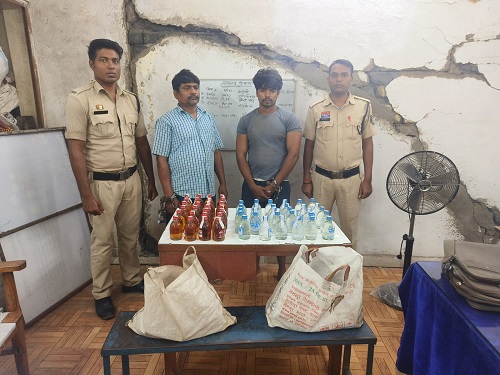 जानकारी के अनुसार, पुलिस को मुखबिर से सूचना मिली थी कि धमधा नाका सब्जी मंडी के पास कुछ लोग प्लास्टिक की बोरियों में शराब रखकर ग्राहकों की तलाश कर रहे हैं। सूचना पर तत्काल कार्रवाई करते हुए पुलिस टीम ने घेराबंदी कर दो संदिग्धों को पकड़ा। तलाशी के दौरान सफेद बोरे में भारी मात्रा में देशी शराब बरामद की गई।