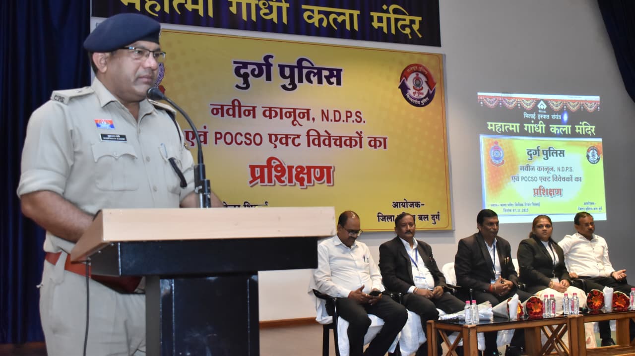 दुर्ग | दुर्ग पुलिस द्वारा नवीन कानून, एन.डी.पी.एस.एवं POCSO एक्ट में पुलिस अधिकारी/विवेचकों का प्रशिक्षण कार्यक्रम का आयोजन महात्मा गांधी कला मंदिर भिलाई इस्पात संयंत्र, सिविक सेंटर, भिलाई में विजय अग्रवाल, भापुसे., वरिष्ठ पुलिस अधीक्षक दुर्ग के निर्देशन में आयोजित किया गया था।