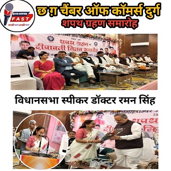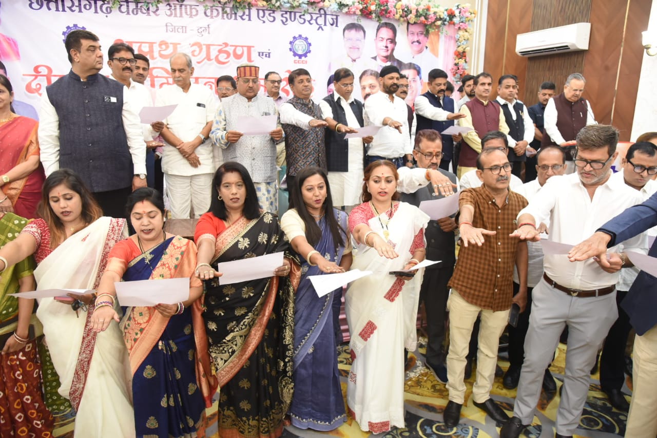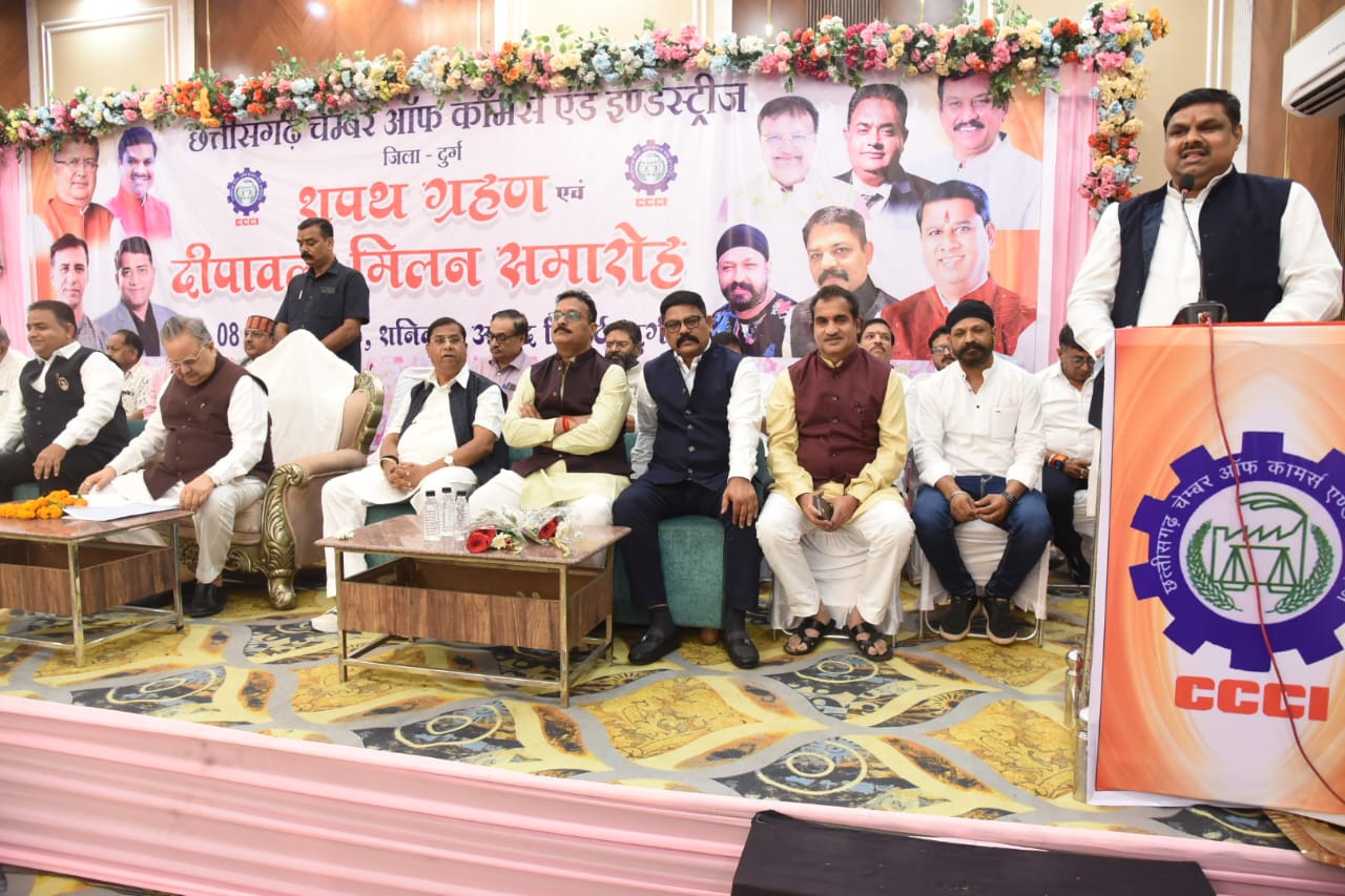 दुर्ग। छत्तीसगढ़ चेम्बर ऑफ कॉमर्स एंड इंडस्ट्रीज, दुर्ग इकाई के नवगठित पदाधिकारियों का शपथ ग्रहण समारोह शुक्रवार को आनंद रिसॉर्ट, पुलगांव चौक दुर्ग में भव्य रूप से आयोजित हुआ। कार्यक्रम के मुख्य अतिथि छत्तीसगढ़ विधानसभा अध्यक्ष डॉ. रमन सिंह रहे, जबकि समारोह की अध्यक्षता स्कूल शिक्षा मंत्री गजेन्द्र यादव ने की।