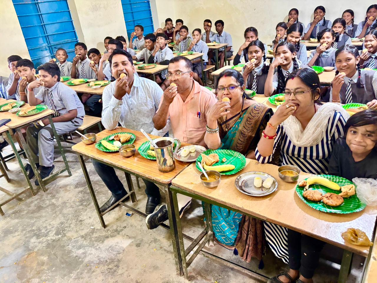 कार्यक्रम का आयोजन प्रधानमंत्री पोषण आहार योजना के अंतर्गत किया गया, जिसके माध्यम से बच्चों को अतिरिक्त पोषण प्रदान करने का भी उद्देश्य रहा। इस अवसर पर बच्चों को सामान्य मध्यान्ह भोजन के साथ-साथ केला, समोसा, क्रीम ब्रेड और मीठा लड्डू परोसा गया, जिससे सभी विद्यार्थियों के चेहरों पर प्रसन्नता झलक उठी।
