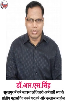 सूरजपुर : सूरजपुर जिले के वरिष्ठ शिशु रोग विशेषज्ञ एवं पूर्व मुख्य चिकित्सा एवं स्वास्थ्य अधिकारी डॉ. आर.एस. सिंह को छत्तीसगढ़ स्वास्थ्य अधिकारी-कर्मचारी संघ का प्रांतीय महासचिव नियुक्त किया गया है। उनकी नियुक्ति की आधिकारिक घोषणा होते ही जिले सहित प्रदेशभर के स्वास्थ्य अमले में खुशी और उत्साह की लहर दौड़ गई।