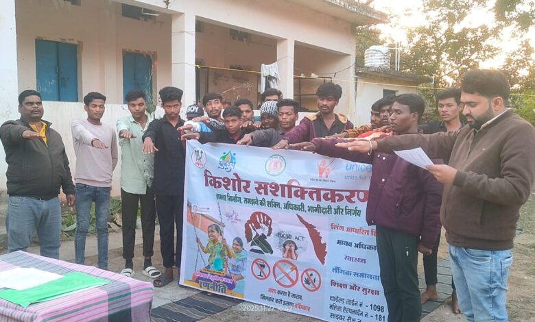 सूरजपुर : कलेक्टर एस. जयवर्धन सर के मार्गदर्शन में महिला एवं बाल विकास विभाग, आदिवासी विकास विभाग UNICEF एवं एग्रिकोन के सहयोग से 27 नवंबर बाल विवाह निषेध दिवस के अवसर पर सूरजपुर, भैयाथान और ओडगी ब्लॉक के छात्रावास में जागरूकता कार्यक्रम अभियान प्रारंभ किया गया । प्री मैट्रिक बालक छात्रावास सूरजपुर , पोस्ट मैट्रिक छात्रावास एवं बालक आश्रम बिहारपुर , पोस्ट मैट्रिक बालक छात्रावास भैयाथान , प्री मैट्रिक बालक छात्रावास धरसेङी इत्यादि स्थानों पर बाल विवाह मुक्त सूरजपुर जागरूकता अभियान कार्यक्रम सफलतापूर्वक सम्पन्न कराया गया।