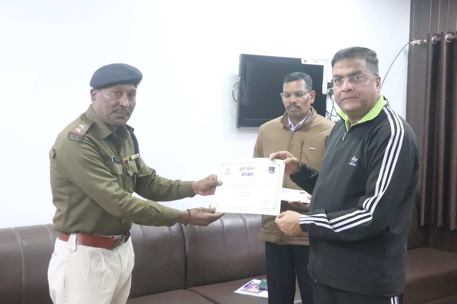 दुर्ग | वरिष्ठ पुलिस अधीक्षक विजय अग्रवाल (भापुसे), जिला दुर्ग द्वारा दिनांक 29 दिसंबर 2025 को पुलिस कंट्रोल रूम सेक्टर-06, भिलाई में एक सम्मान समारोह आयोजित किया गया। इस अवसर पर 02 अधिकारियों एवं 06 पुलिस कर्मचारियों को विभिन्न गंभीर प्रकरणों में उत्कृष्ट एवं सराहनीय कार्य करने पर नगद पुरस्कार एवं प्रशस्ति पत्र प्रदान कर सम्मानित किया गया।