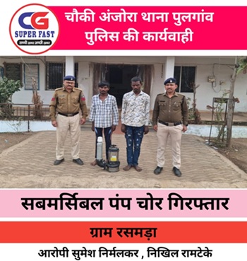 प्रकरण में घटना स्थल का निरीक्षण कर प्रकरण के अज्ञात आरोपियों की पता साजी के दौरान सुचना मिलने पर संदेही सुमेश निर्मलकर जो पुर्व मे राजनांदगांव से चोरी के मामले में जेल जा चुका है उसे व उसके साथी निखील रामटेके को चौकी लाकर पूछताछ किया गया दोनो ने पुछताछ में बताये कि दिनांक 28.12.2025 को रात्रि में 11/30 बजे वहां कोई नहीं था अपने साथ ले गये हैक्सा ब्लेड़ से वायर को काटकर सबमर्सिबल पंप को चोरी कर अपने घर में छुपाकर रखा है|