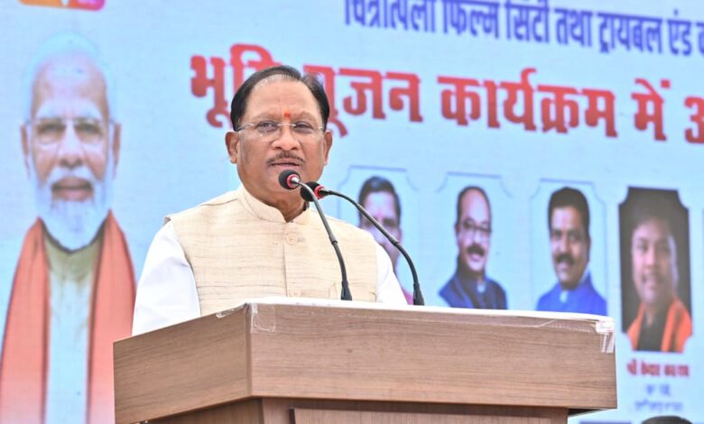 रायपुर : छत्तीसगढ़ का बरसों पुराना सपना आज साकार हो गया है। चित्रोत्पला फिल्म सिटी तथा ट्राइबल एंड कल्चरल कन्वेंशन सेंटर के निर्माण से फिल्म निर्माण के क्षेत्र में छत्तीसगढ़ को देश और दुनिया में एक नई पहचान मिलेगी। इस महत्वाकांक्षी पहल के माध्यम से छत्तीसगढ़ न केवल फिल्म निर्माण और सांस्कृतिक आयोजनों का एक प्रमुख केंद्र बनने की दिशा में अग्रसर होगा, बल्कि यह परियोजना राज्य की रचनात्मक अर्थव्यवस्था को भी नई गति प्रदान करेगी। चित्रोत्पला फिल्म सिटी और ट्राइबल एंड कल्चरल कन्वेंशन सेंटर के निर्माण से स्थानीय प्रतिभाओं को राष्ट्रीय-अंतरराष्ट्रीय मंच मिलेगा, निवेश के नए अवसर सृजित होंगे और छत्तीसगढ़ की सांस्कृतिक पहचान वैश्विक स्तर पर और अधिक सशक्त होगी। यह परियोजना आने वाले वर्षों में राज्य के युवाओं, कलाकारों और पर्यटन क्षेत्र के लिए विकास के नए द्वार खोलेगी। मुख्यमंत्री विष्णु देव साय ने आज राजधानी रायपुर के ग्राम माना-तूता में चित्रोत्पला फिल्म सिटी तथा ट्राइबल एंड कल्चरल कन्वेंशन सेंटर के भूमिपूजन कार्यक्रम को संबोधित करते हुए यह बात कही।