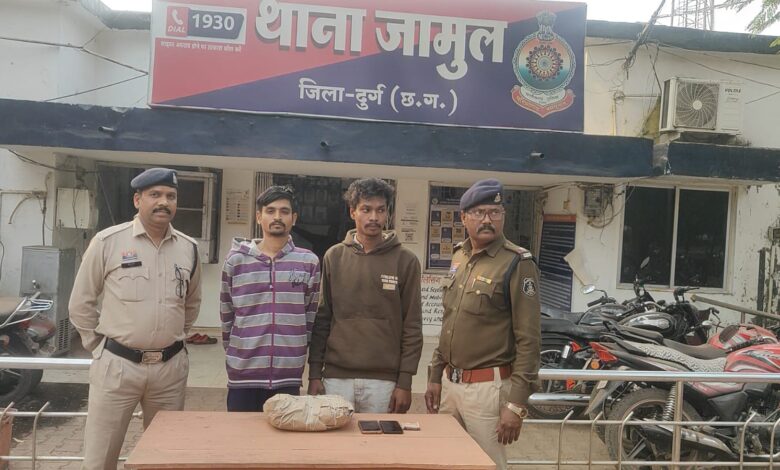 दुर्ग जिले के थाना जामुल पुलिस ने मादक पदार्थों के विरुद्ध कार्रवाई करते हुए एनडीपीएस एक्ट के तहत दो आरोपियों को गिरफ्तार किया है। पुलिस ने आरोपियों के कब्जे से 1.770 किलोग्राम गांजा, ₹1500 नगद राशि और एक मोबाइल फोन जब्त किया है।
