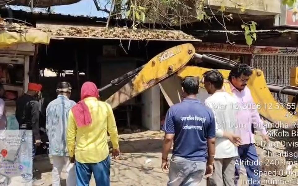 दुर्ग/12 मार्च। नगर पालिक निगम दुर्ग द्वारा शहर में बढ़ते अवैध अतिक्रमण के खिलाफ सख्त कार्रवाई करते हुए पटरीपार सिकोला भाटा सब्जी मार्केट क्षेत्र में नाली के ऊपर किए गए अवैध निर्माणों को हटाया गया। निगम की टीम ने जेसीबी की मदद से करीब 35 से अधिक दुकानों के बाहर नाली के ऊपर बनाए गए अवैध शेड और पक्के निर्माण को तोड़कर हटाया।