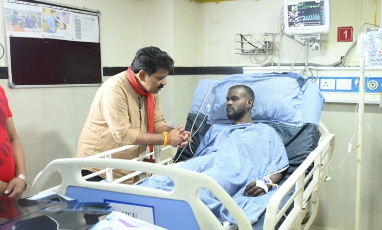 रायपुर | नक्सलियों से मुठभेड़ में घायल डीआरजी के जवान  रामचंद्र यादव से मिलने उपमुख्यमंत्री  विजय शर्मा देर रात राजधानी रायपुर के  नारायणा अस्पताल पहुंचे। इस दौरान उपमुख्यमंत्री ने घायल जवान से उनका हालचाल जाना। उप मुख्यमंत्री  शर्मा ने घायल जवान से घटना की जानकारी भी ली।